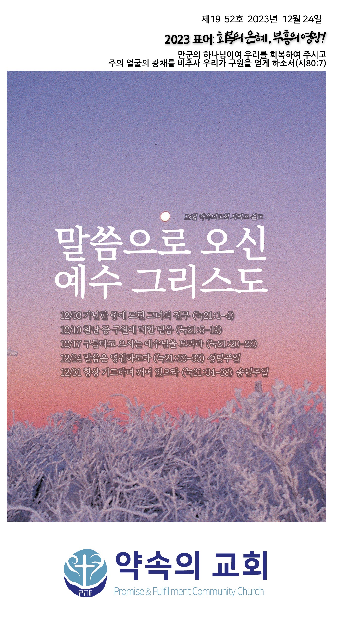 2023년 12월 17일 약속의 교회 주보