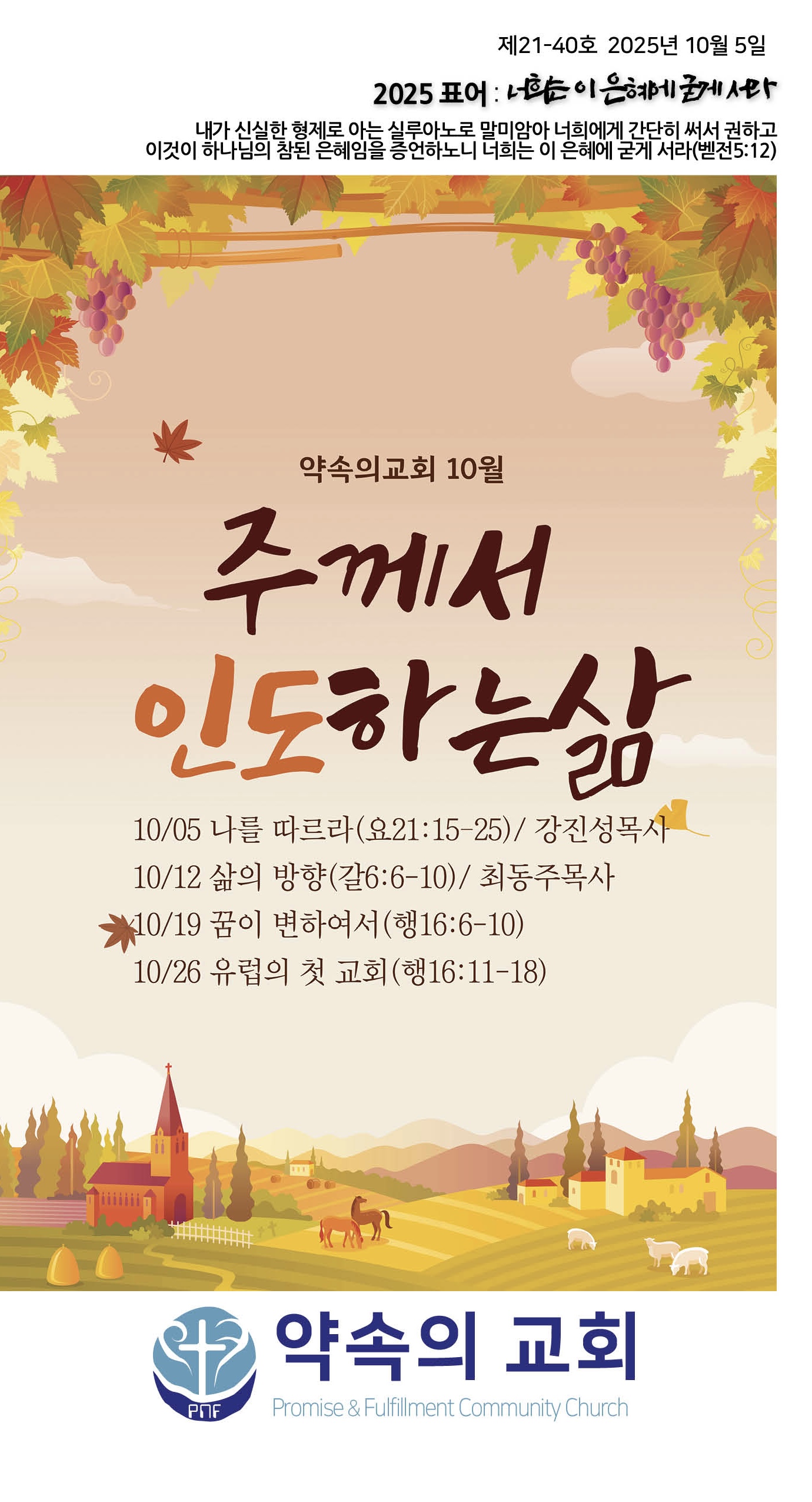 2025년 10월 26일 약속의교회 주보