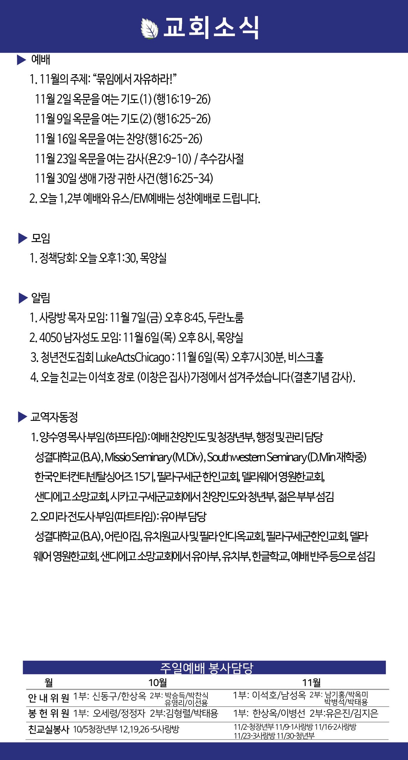 2025년 11월 2일 약속의교회 주보