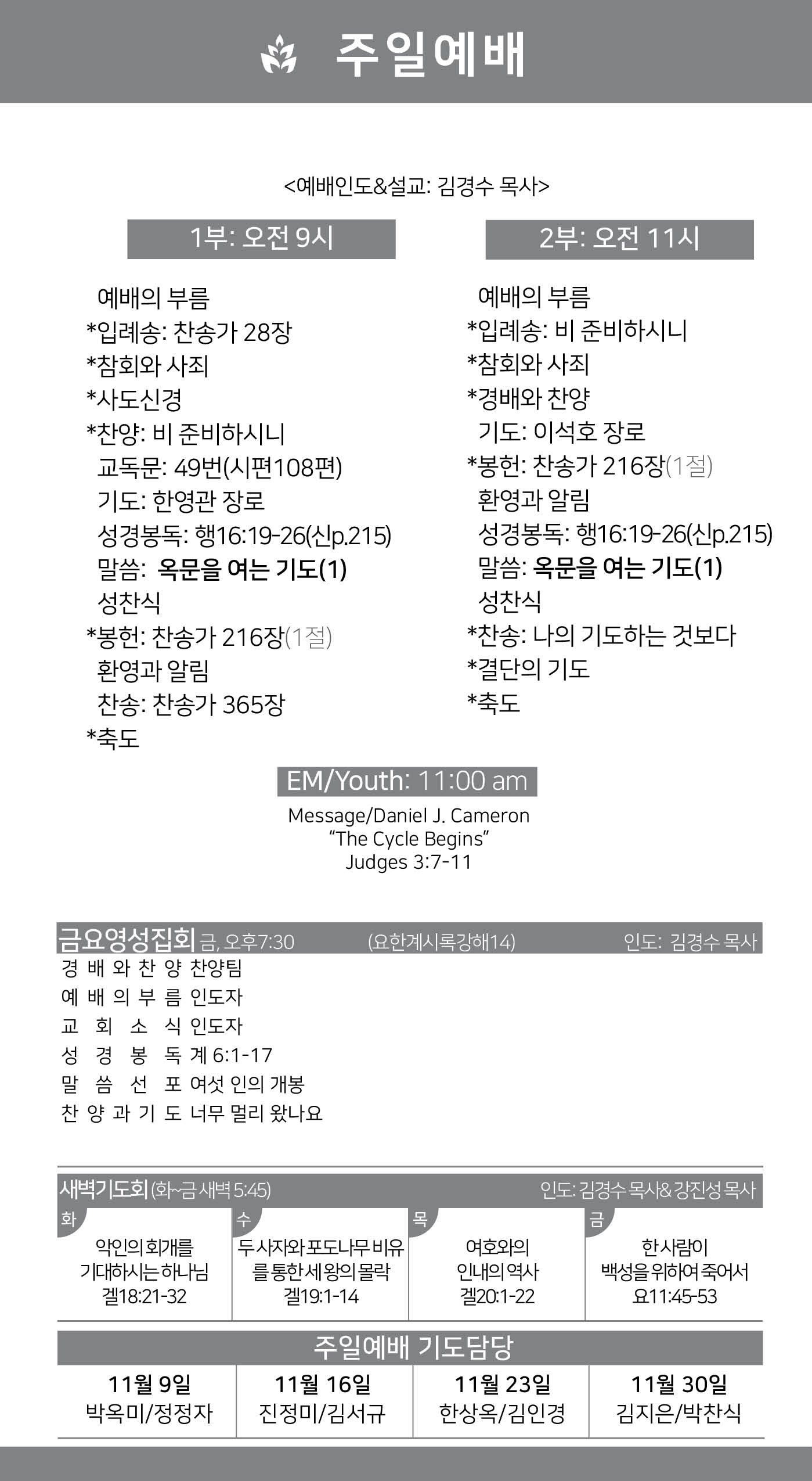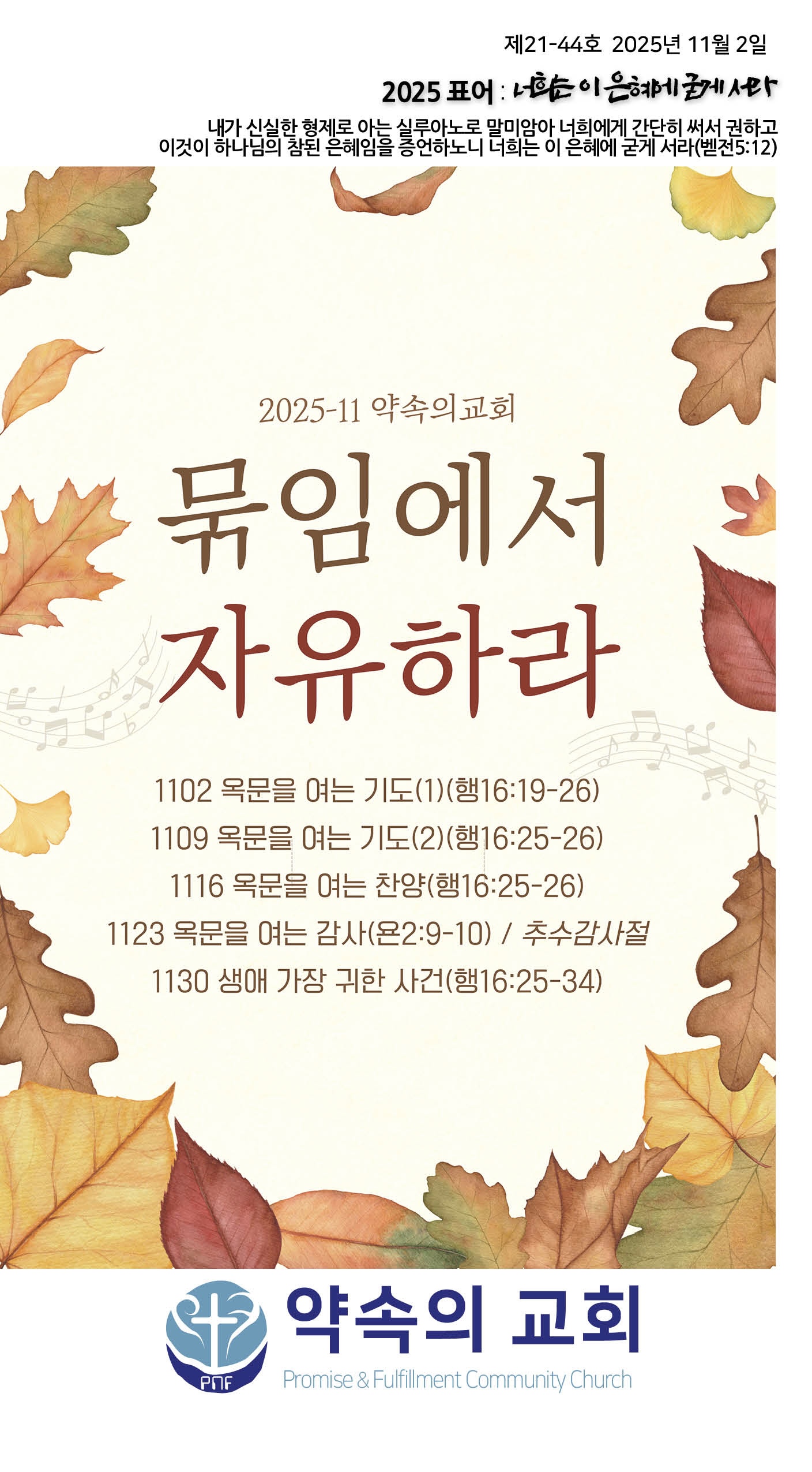 2025년 11월 16일 약속의교회 주보