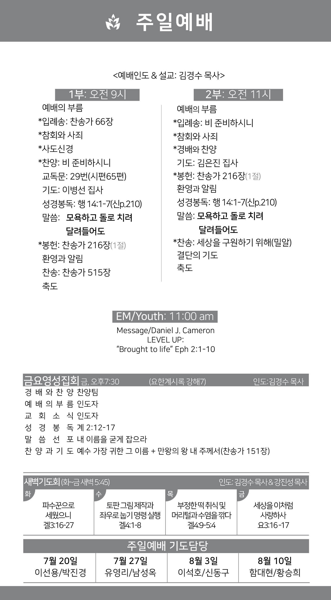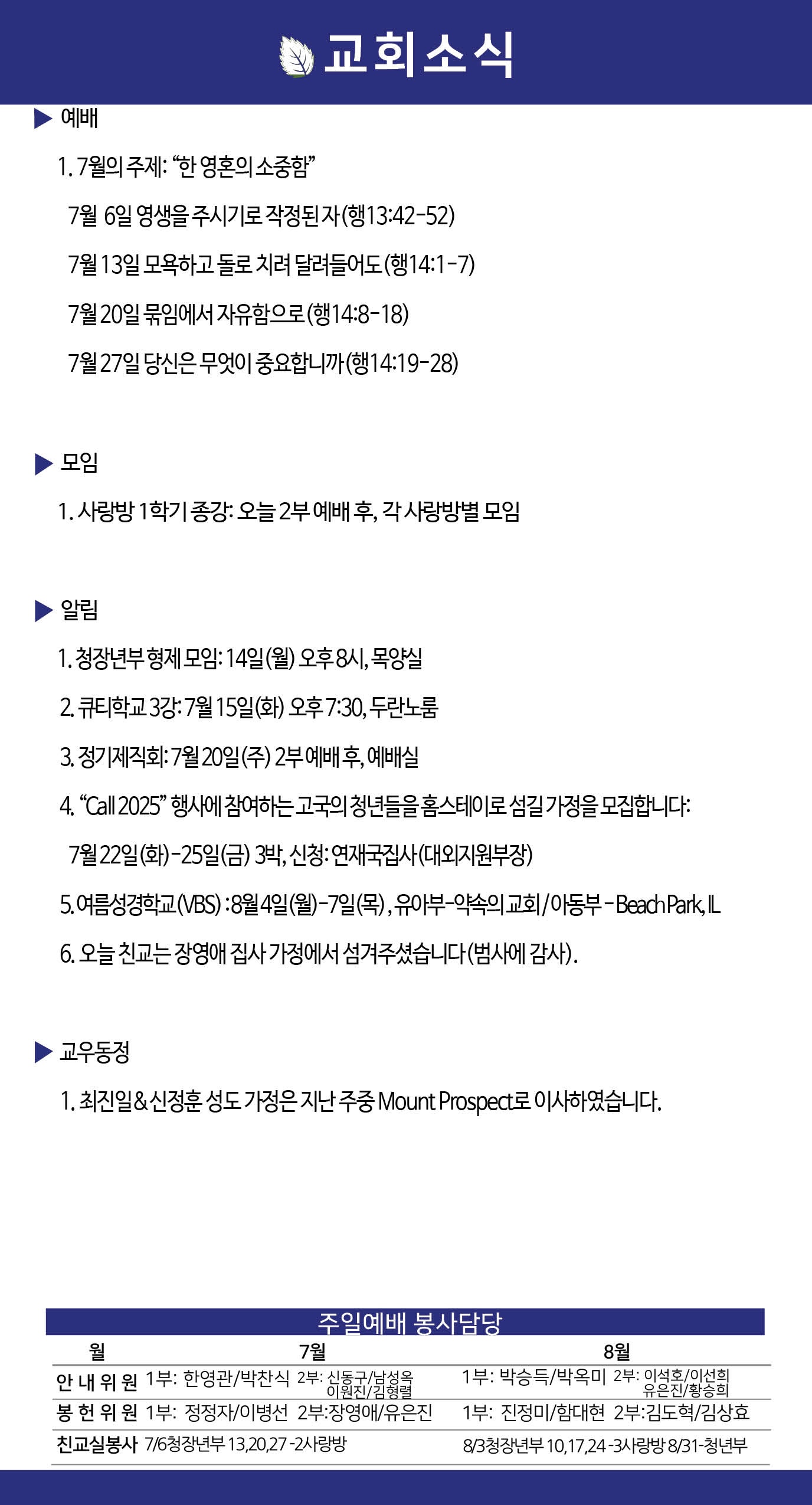 2025년 7월 20일 약속의 교회 주보