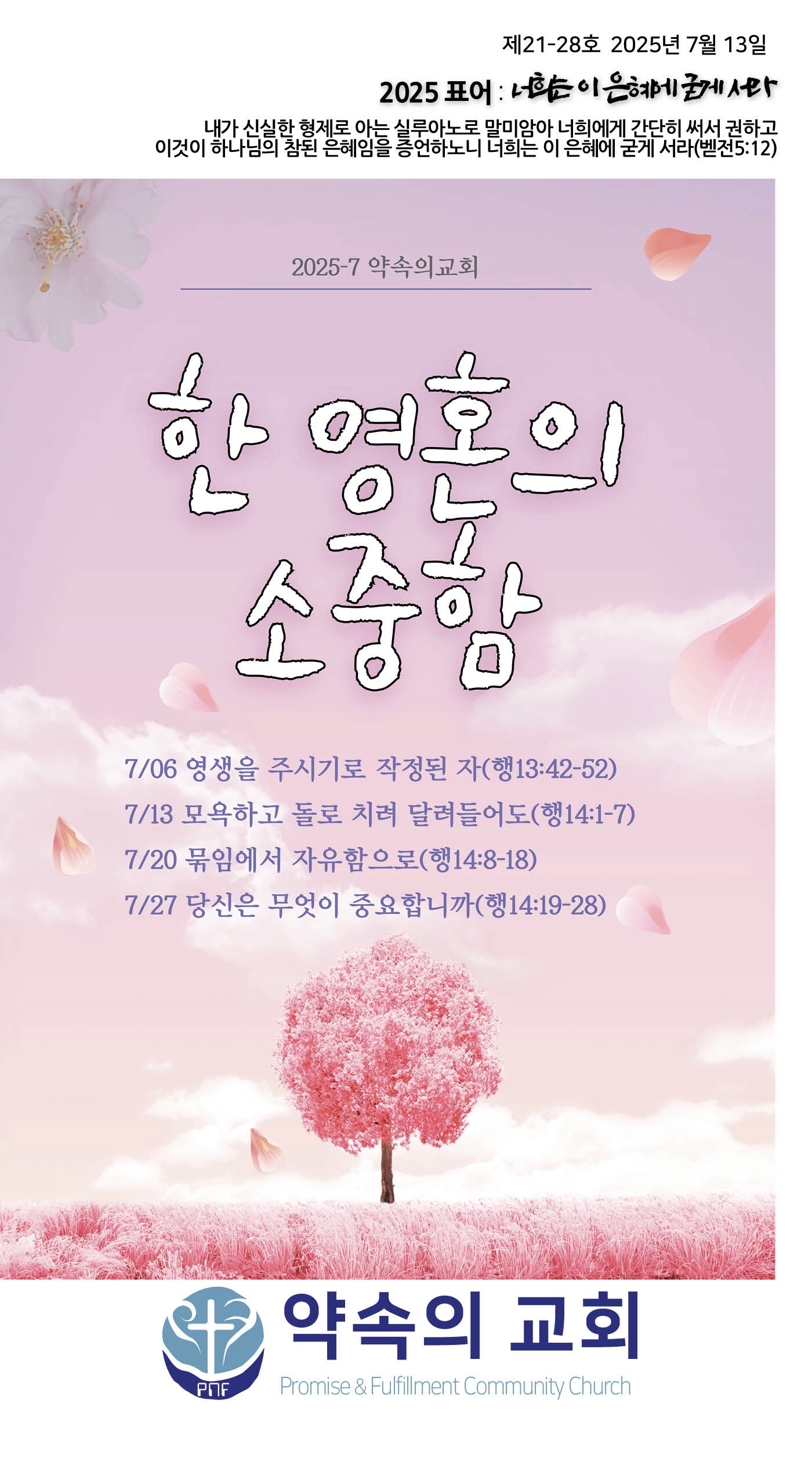 2025년 7월 13일 약속의 교회 주보