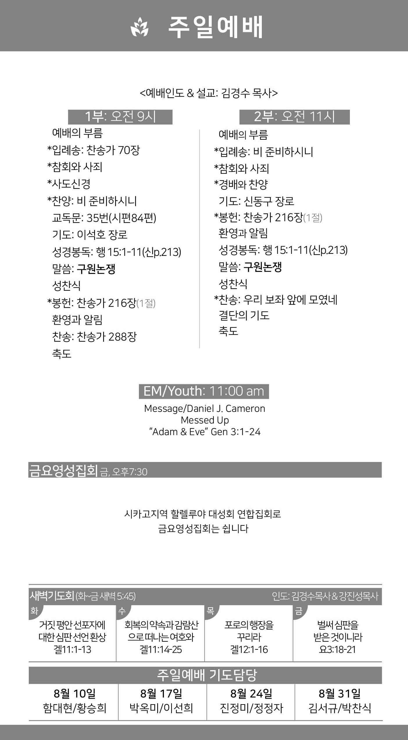 2025년 8월 17일 약속의교회 주보