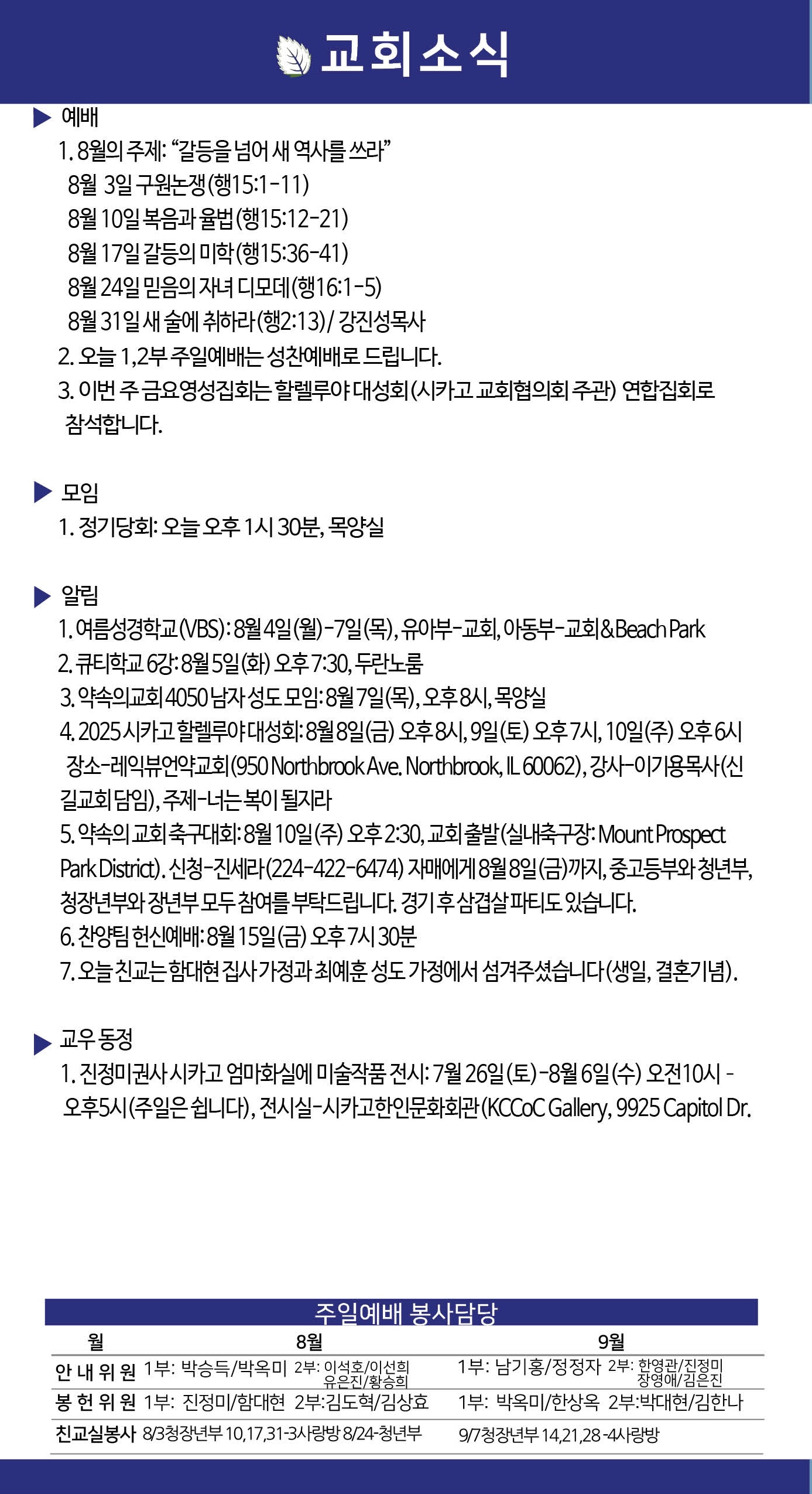 2025년 8월 3일 약속의 교회 주보
