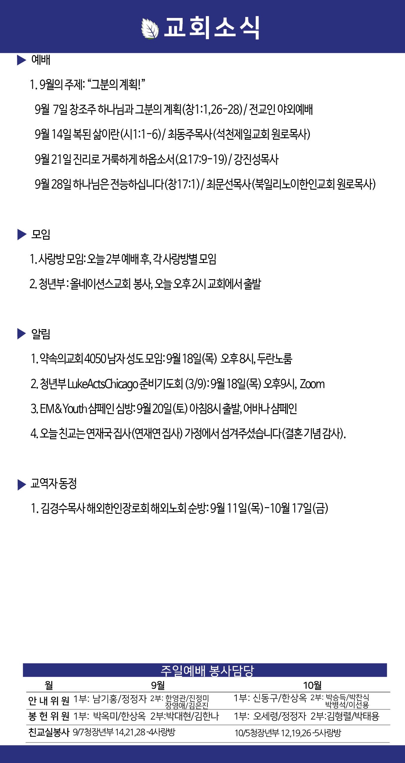 2025년 9월 7일 약속의교회 주보