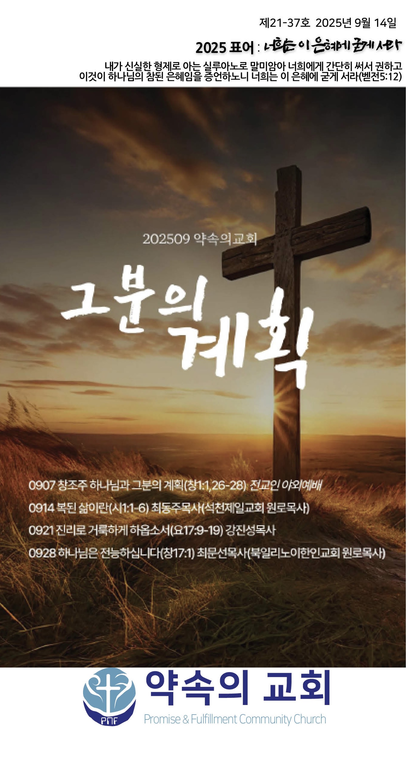 2025년 9월 21일 약속의교회 주보