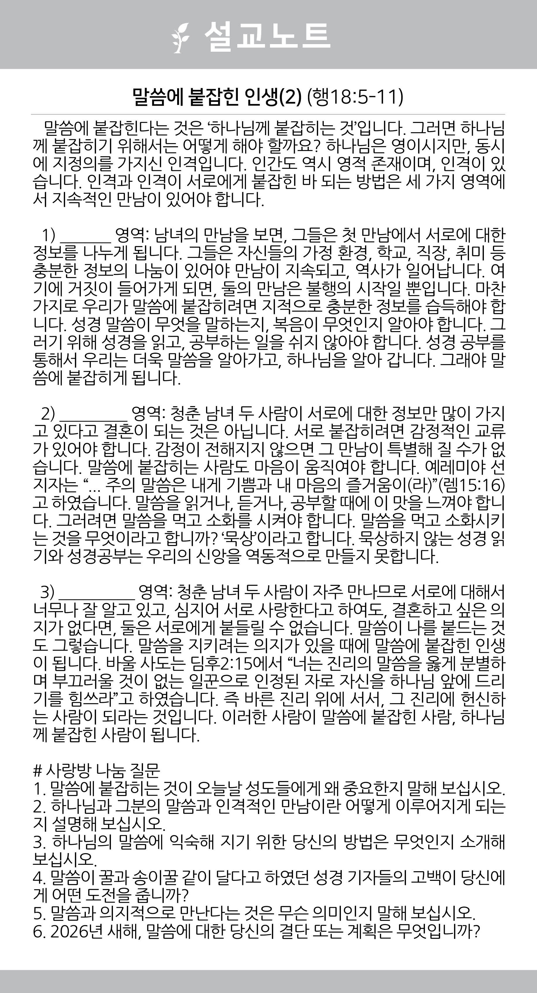 2026년 3월 8일 약속의교회 주보