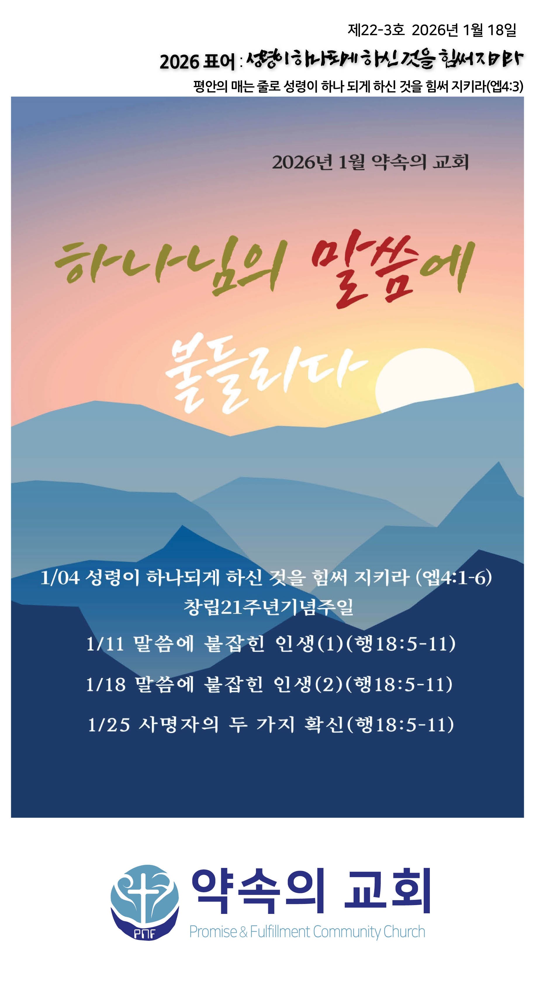 2026년 1월 18일 약속의교회 주보