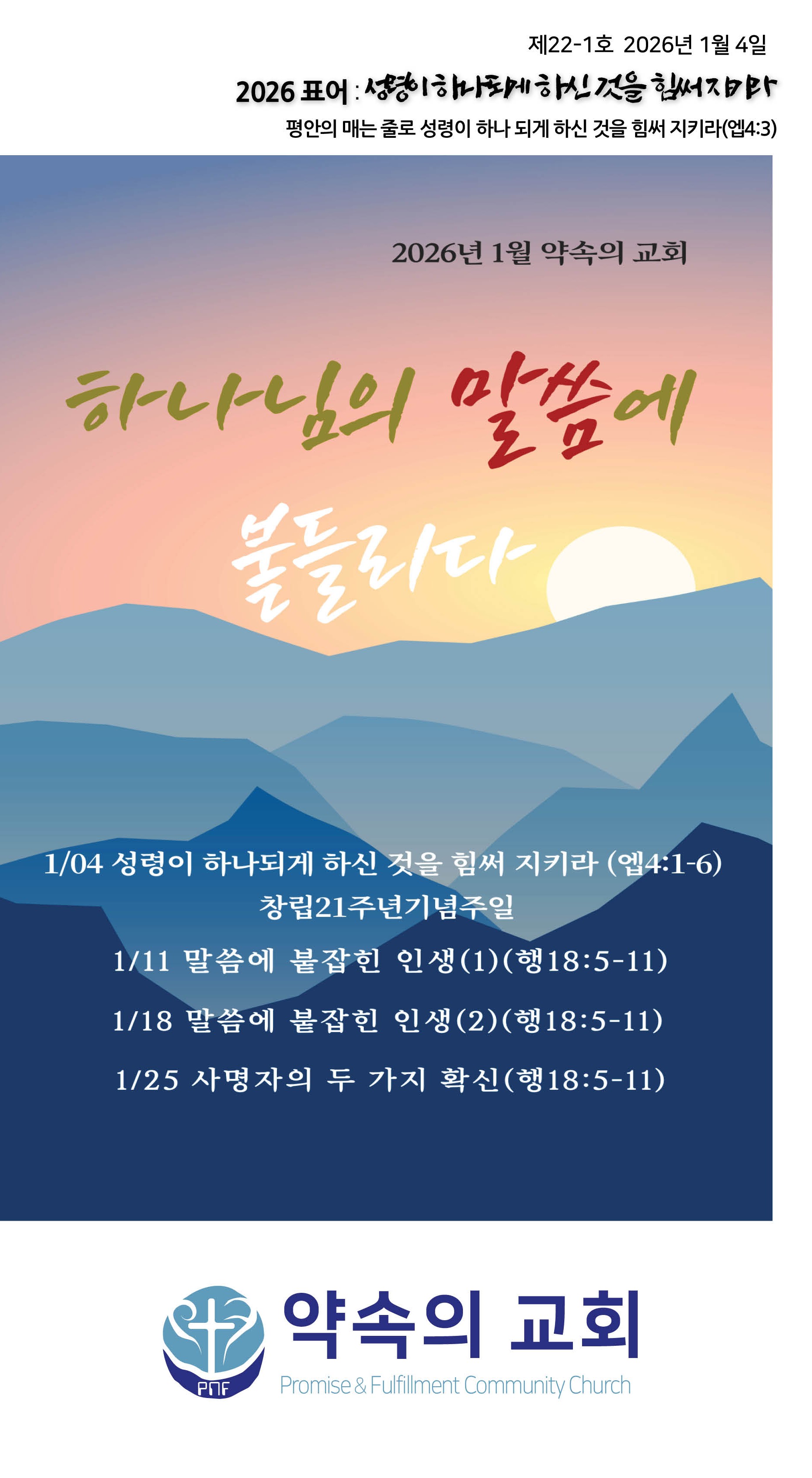 2026년 1월 4일 약속의교회 주보