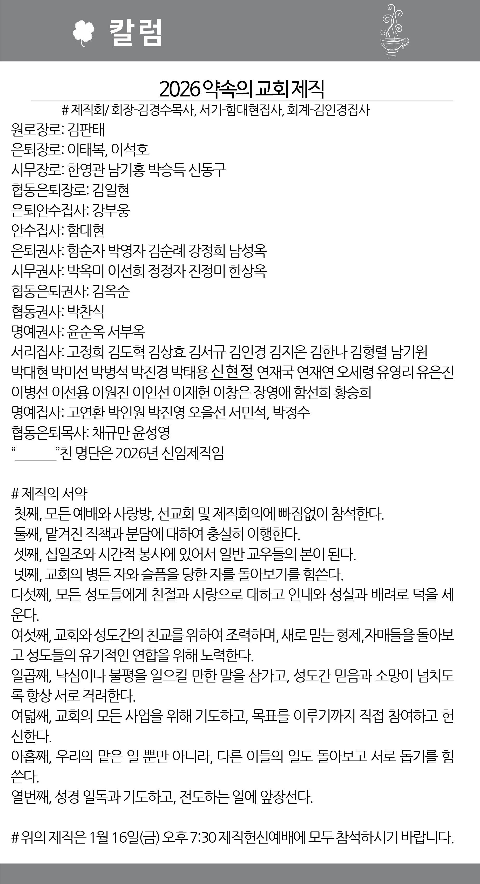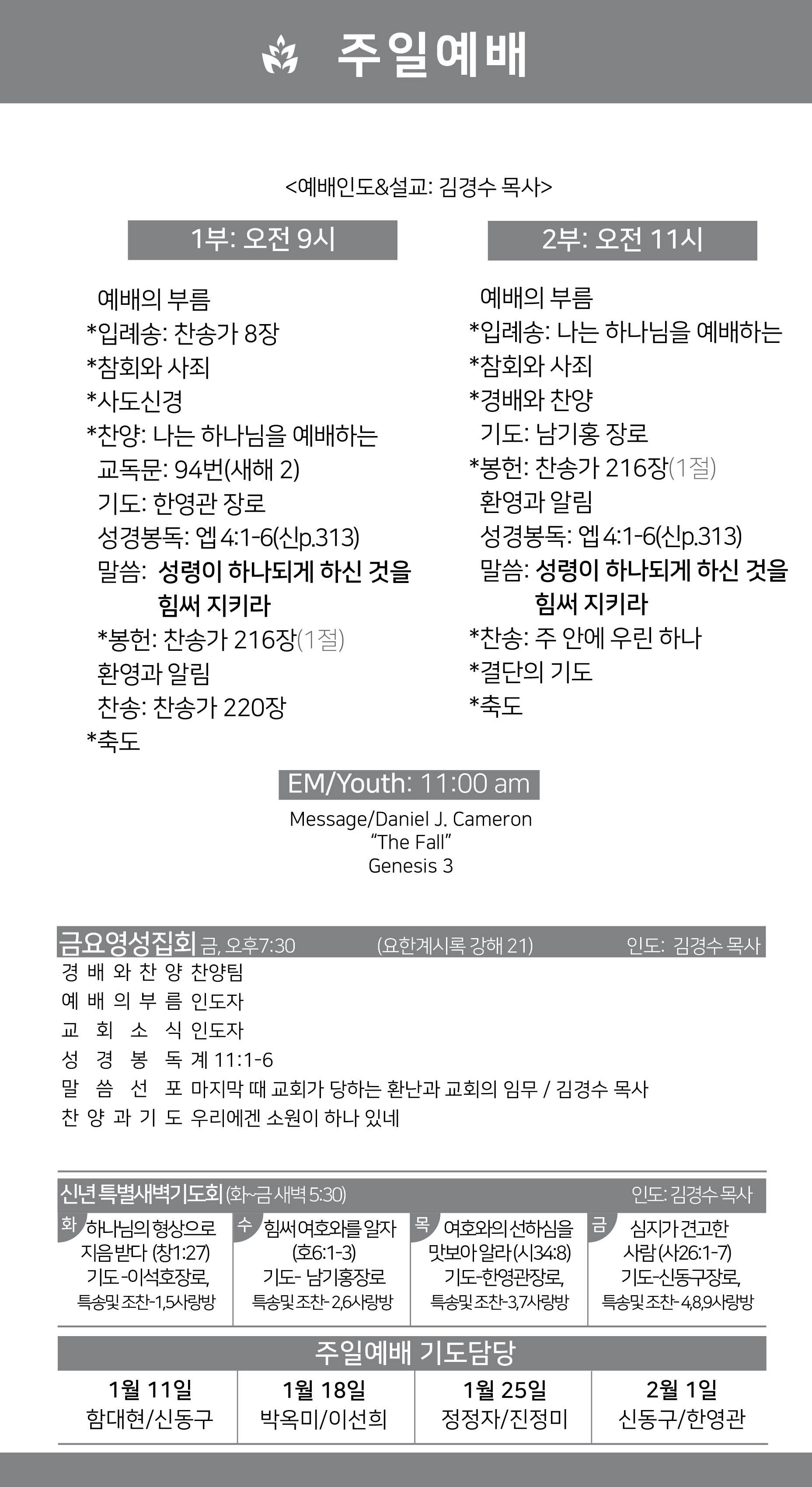 2026년 1월 11일 약속의교회 주보