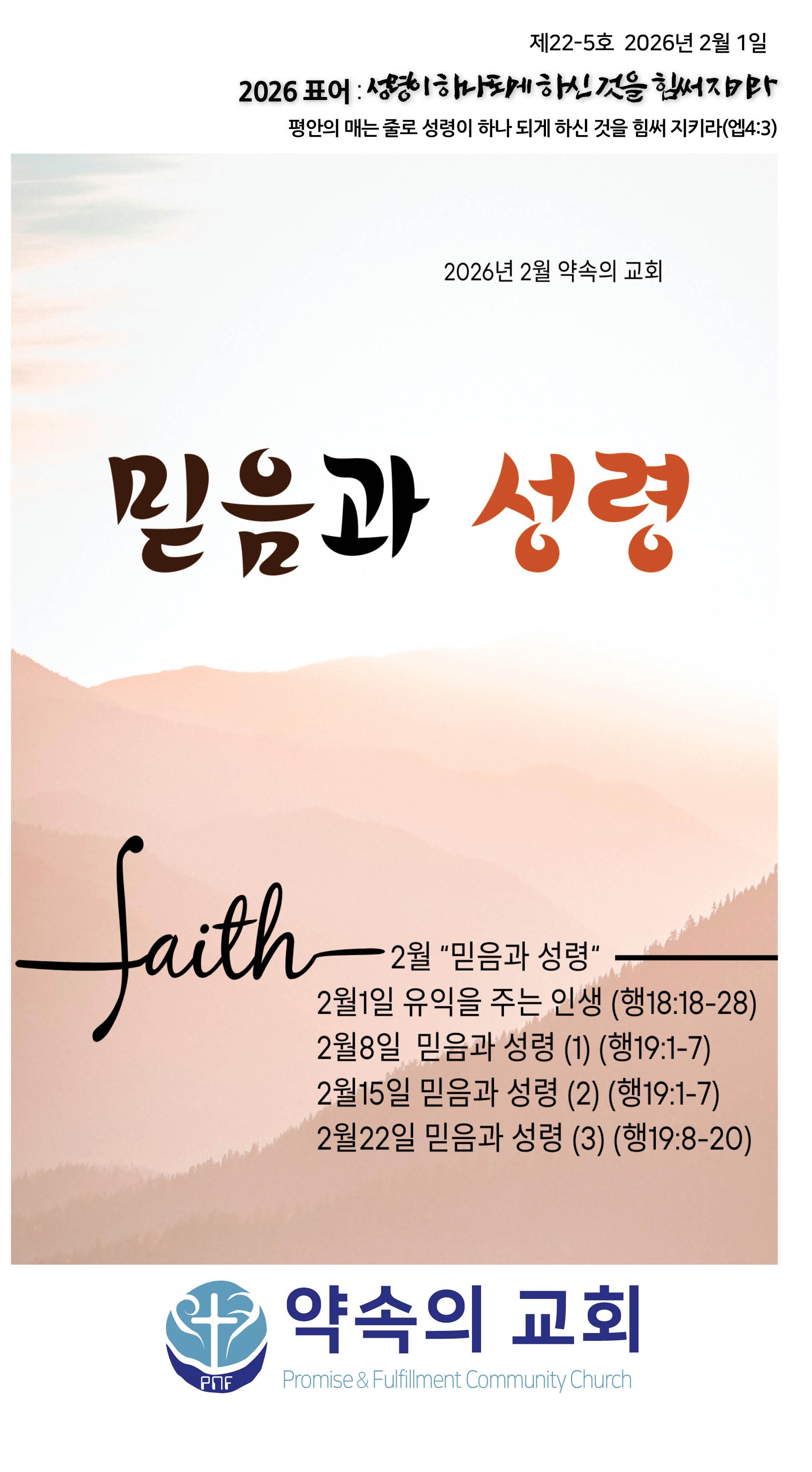 2026년 2월 22일 약속의교회 주보